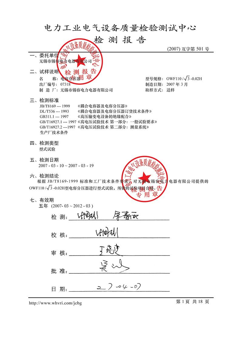 Test report release time:2020-07-20 04:02:47source:Wuxi Xirong Electric Appliance Co., Ltd.Click:1516